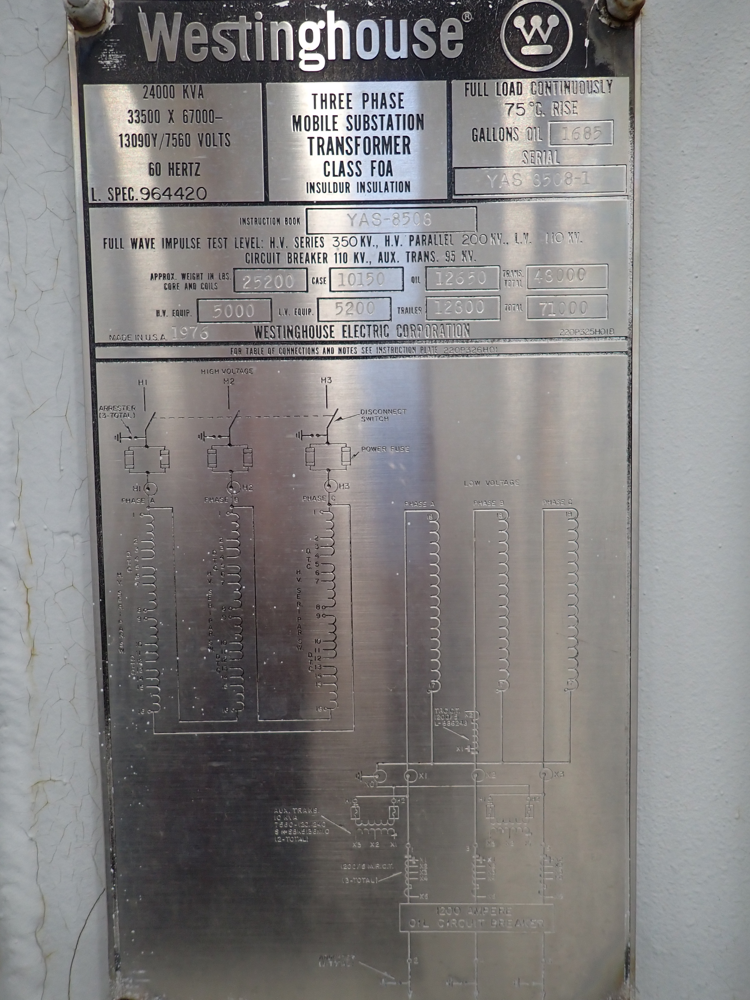 Westinghouse 24 MVA Mobile 67 X 33.5 kV Delta 13.09 kV Wye