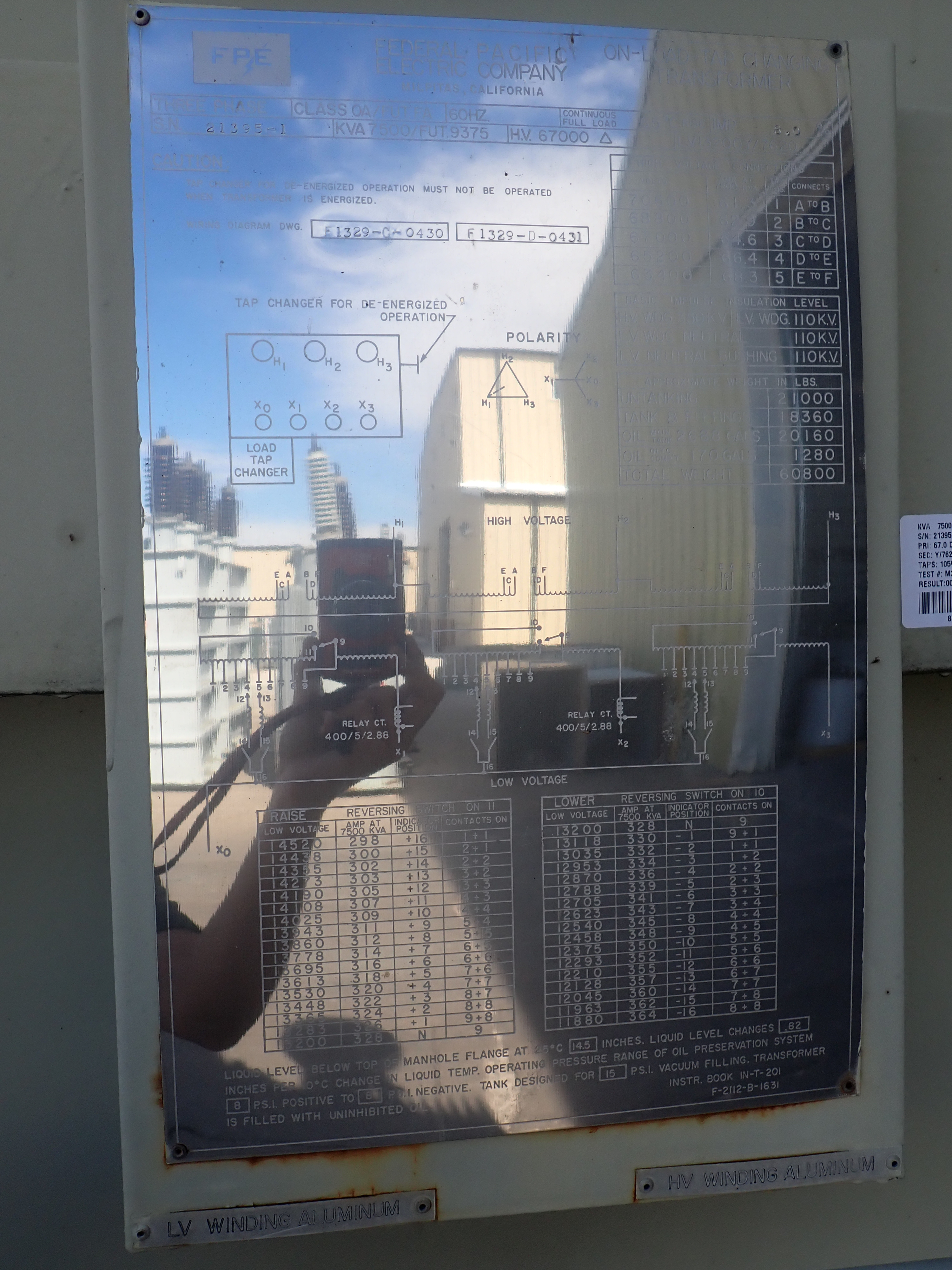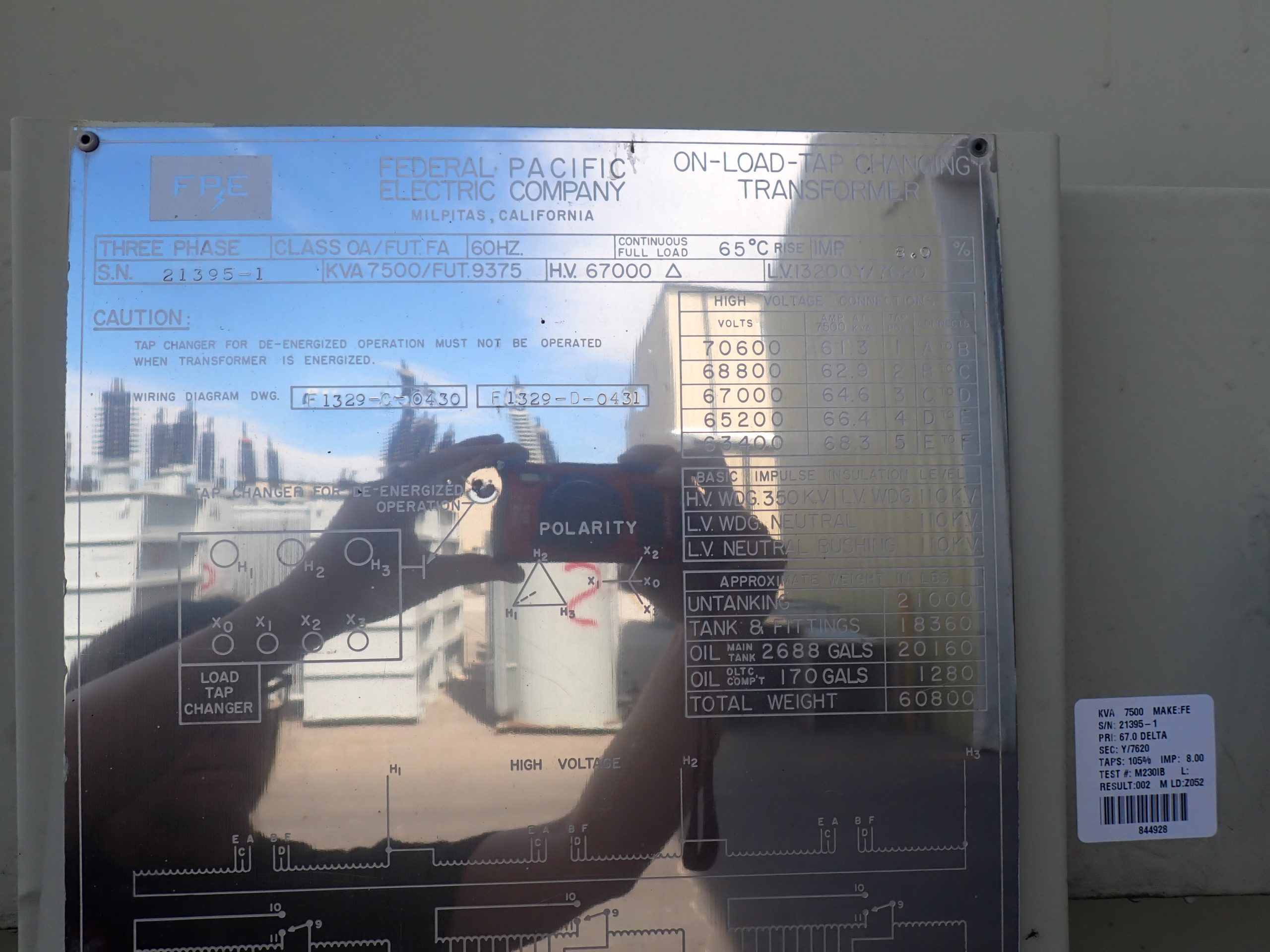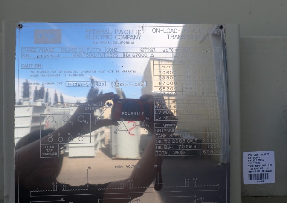 Federal Pacific Substation 67 kV Delta – 13.2/7.62 kV Wye